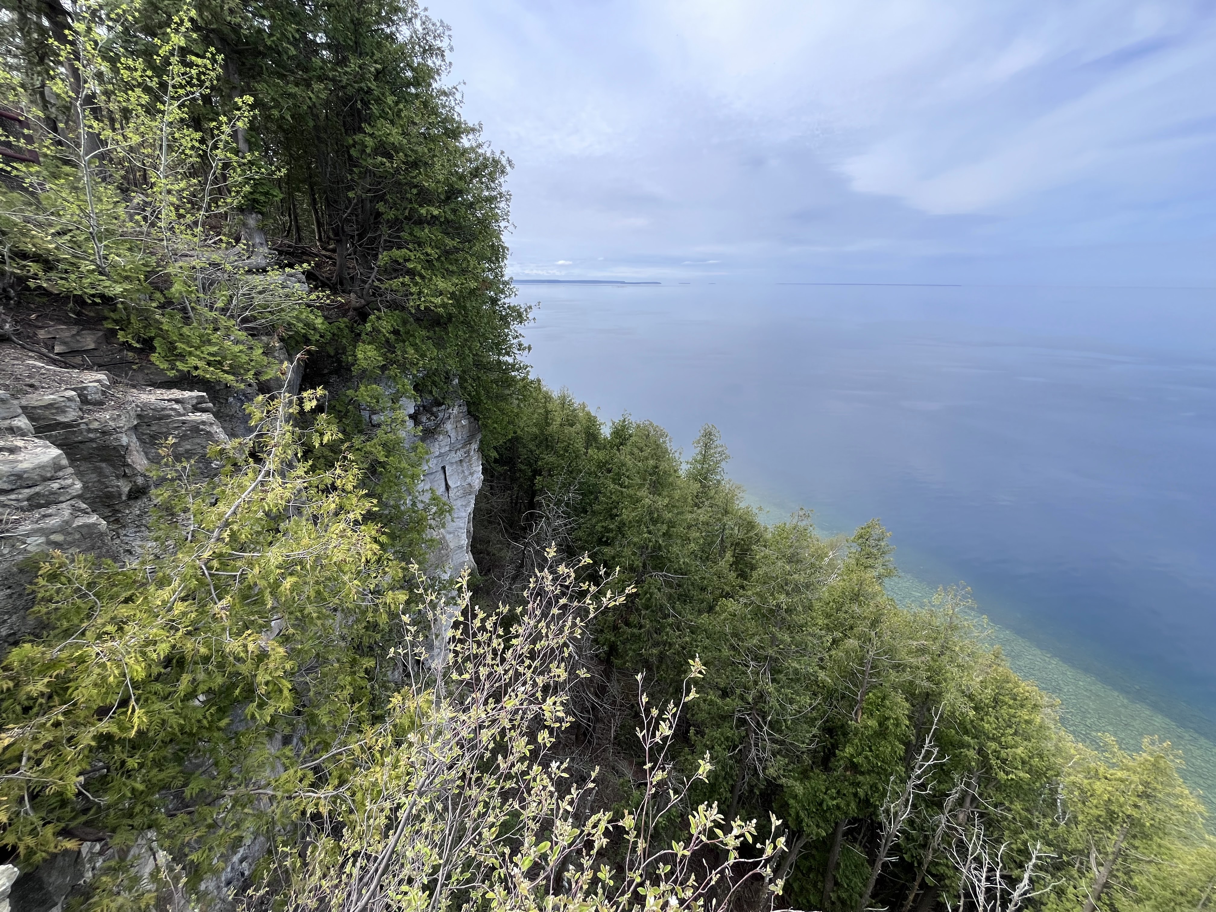 A view of the escarpment and Green Bay from Ellison Bluff County Park, which borders a recent property conserved with the Door County Land Trust through a conservation easement. Established in 1950, Door County Parks Board declared, “the limestone headlands, as they emerge out of the blue waters of Green Bay, are geologically one of the most outstanding natural monuments in our country. They must be preserved.” Photo by Lucia Hodkiewicz